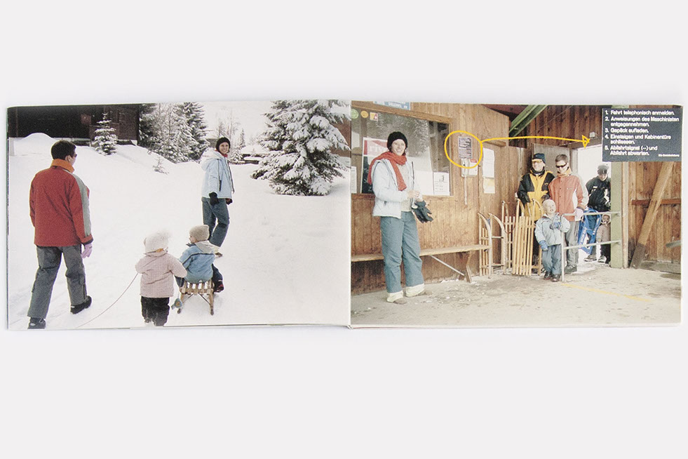 1. Fahrt telefonisch anmelden. 2. Anweisungen des Maschinisten entgegennehmen. 3. Gepäck aufladen. 4. Einsteigen und Kabinentüre schliessen. 5. Abfahrtssignal (--) und Abfahrt abwarten.