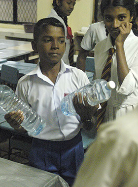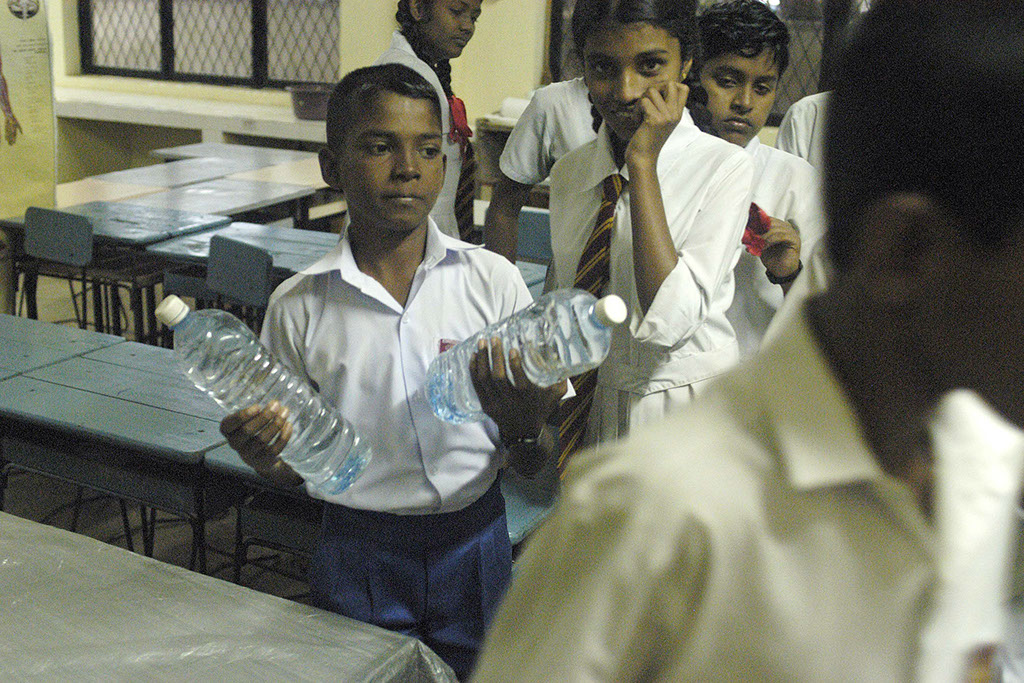 Aufbereitung von Trinkwasser (Sodis) in Morantuduwa, Chamli.