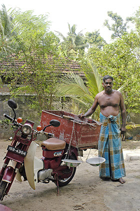 Fischhändler erhält ein Moped um Ware zu verkaufen.