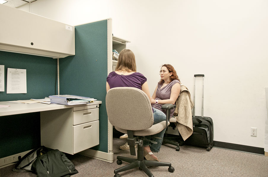 Lehrerin und Studentin sitzen in der Studierkoje.